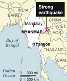 No tsunami warning was issued after the Myanmar quake as US seismologists said it was too far inland to generate a devastating wave in the Indian Ocean.