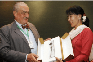 “Aung San Suu Kyi is the iconic leader of this movement, but beside her are many unsung heroes, brave people who have risked everything to advance their shared goal of a democratic Burma. With this award, we honor them all,” said NED President Carl Gershman.