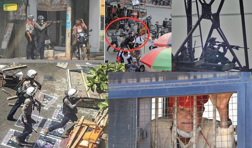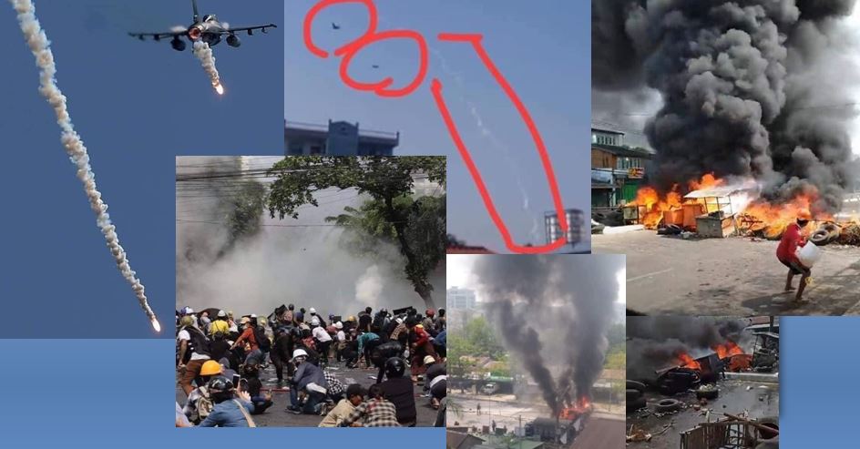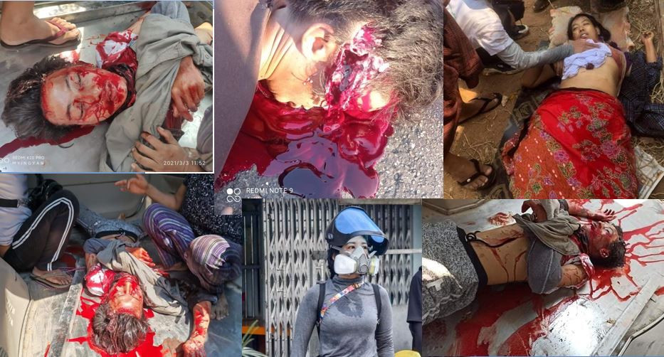 Here are images of brutal killing on unarmed civilians for protesting against the illegal military coup. The military rebel has used air-strike, snipers, tear gas, and deadly real ammunition. Since a military coup took place (February 1, 2021), over 3000 Politicians, writers, academicians, and activists are being detained (still remains unknown how many actual numbers are being arrested at nights at different locations).