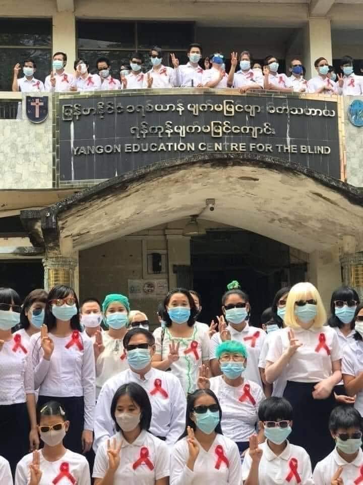 1. Myanmar Military forces occupied blind school to be used as their base camp for carrying out violent crackdown activities in order to control the city.