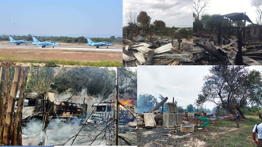 On October 25, 2022, Min Aung Hlaing led military forces attacked civilians and local defense forces through air strikes and burnt down houses, and arrested dozen of people.