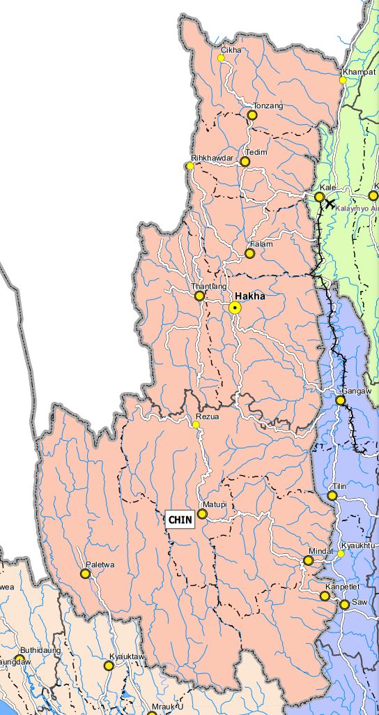 NOTE: (The current Chin state map of Myanmar is not correct. The Chin’s original territory are double bigger than the current one. The Chin are spread in half of Sagaing Division, some in Magwe etc. Which means half of Chin population are spread outside the current Chin state map. Almost 90% of Asho Chin are spread along Bago yoma region and Magwe. The current Myanmar’s national boundary map is reedited after British left the country. The late dictator General Ne Win and his association redraw all the states and division as they pleased in order to preparing the Burmese base territory to be control in case of genuine federal system come to alive.)